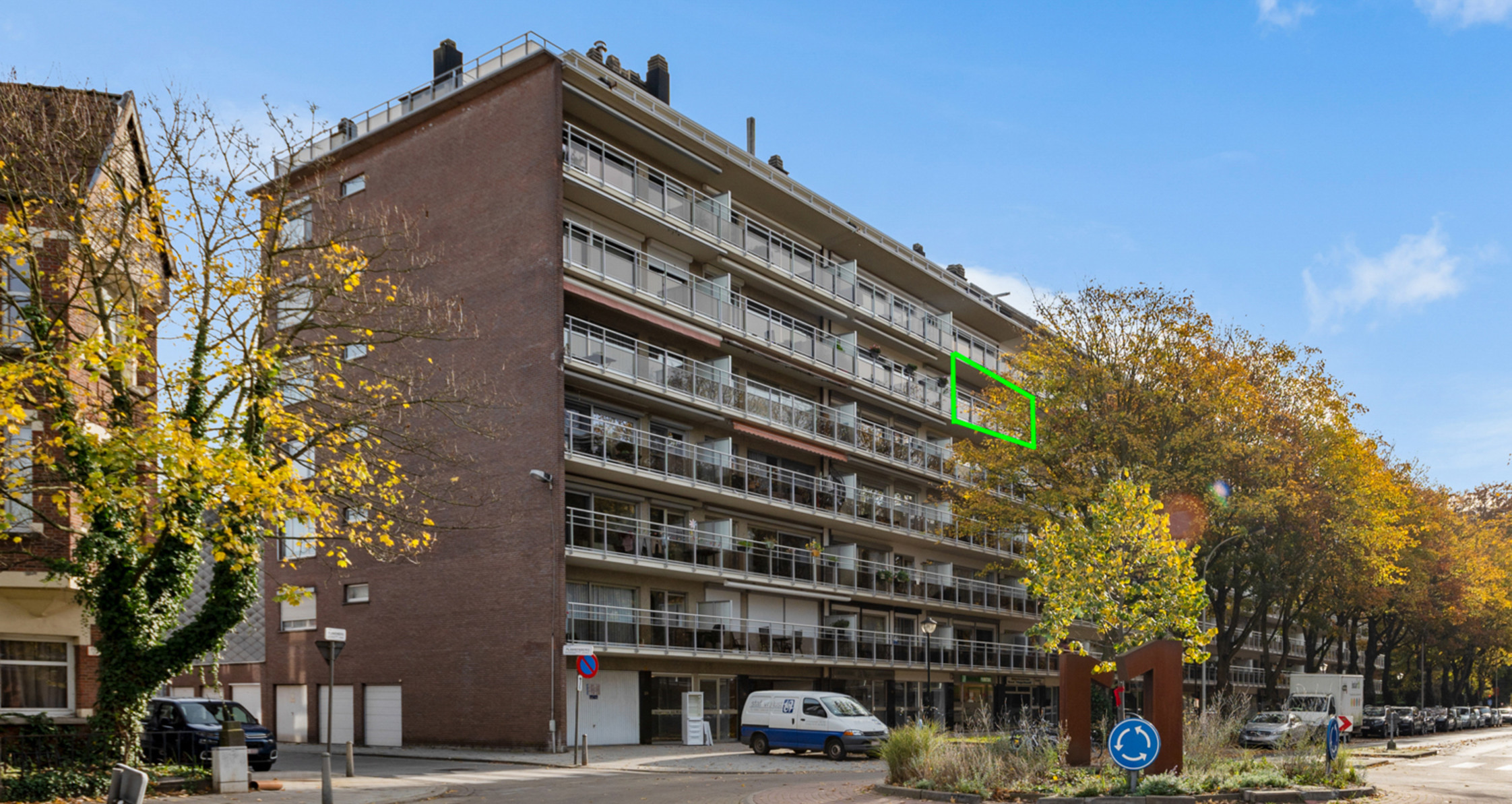 Een mooi uitzicht op de bomen van de Ter Rivierenlaan en het park en de perfecte lichtinval doet dit appartement volledig tot zijn recht komen.