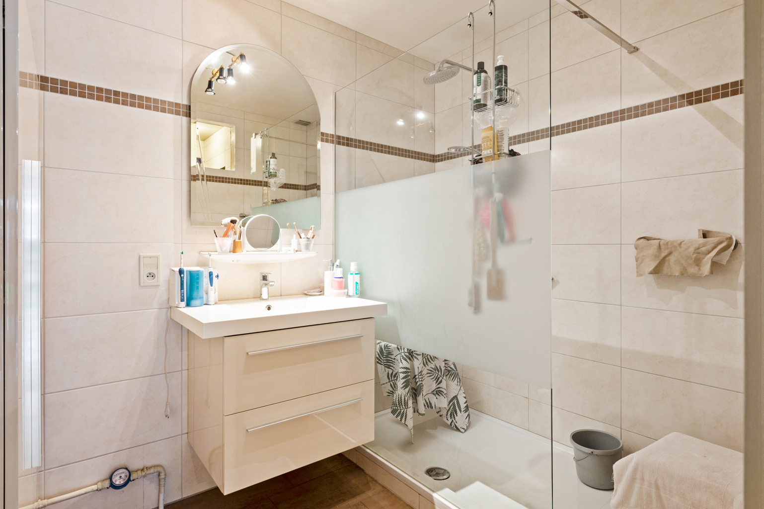 De badkamer is uitgerust met een nieuwe inloopdouche en lavabo.