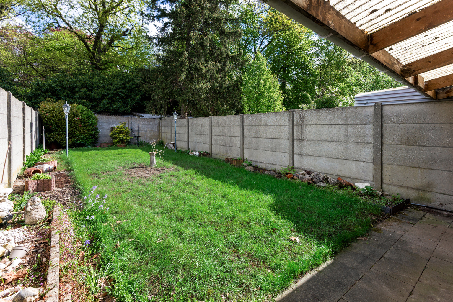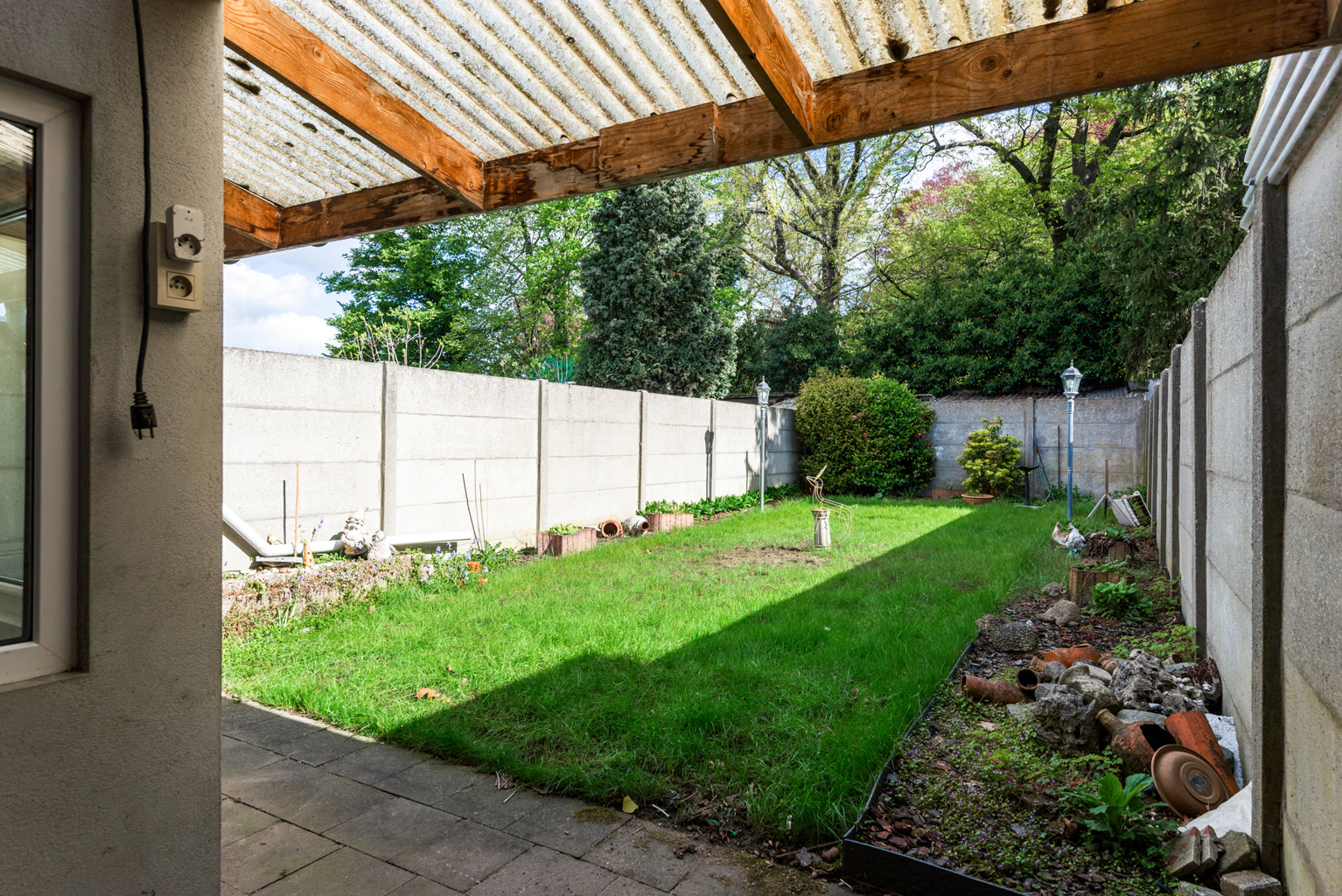 Het gelijkvloers bestaat uit een ruime woonkamer met keuken, badkamer en een zonnige tuin.